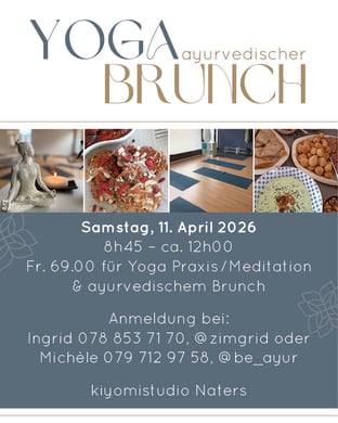 Unser gemütlicher Yoga & Brunch Vormittag steht an. Ideal für ein Freundinnen-Treffen. Es erwartet dich eine abwechslungsreiche Yogalektion von ca. 90 Minuten.